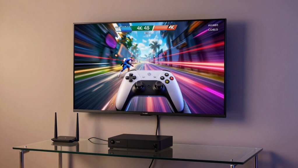 Something worth keeping in mind when picking a gaming TV is input lag—the time it takes for your controller action to appear on screen, measured in milliseconds. You want this number as low as possible, ideally under 20 ms, for snappy, responsive gameplay. High input lag can make games feel sluggish, especially in fast-paced or competitive titles. Look for a TV with a dedicated Game Mode—it disables extra image processing and cuts lag considerably. Keep in mind that higher resolutions like 4K may increase input lag if the TV can’t handle the processing quickly. Your choice of refresh rate settings also affects performance—pair high refresh rates with low input lag for the best experience. You’ll notice the difference when every millisecond counts. Always check real-world lag tests, not just manufacturer claims.