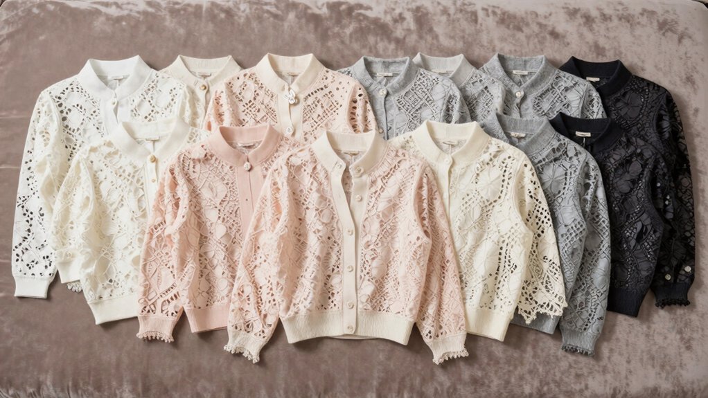 You’ll love how these stand collar lace cardigans blend elegance with ease. They feature cropped silhouettes, delicate floral lace, and flattering fits that layer perfectly over dresses or tanks. With options from short to 3/4 sleeves and button-front or open styles, they suit weddings, dates, or office wear. Crafted in soft nylon-spandex blends, they stretch comfortably while staying breathable. You’ll want to see which styles make the cut for 2026’s most stunning looks.